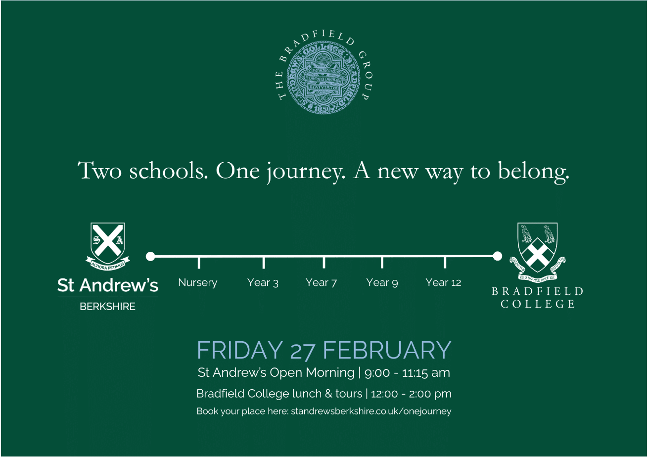 We are delighted to invite any families considering independent education from 11 to an Open Morning at St Andrew’s on Friday 27 February, followed by lunch and a tour of Bradfield College. Find out more here.