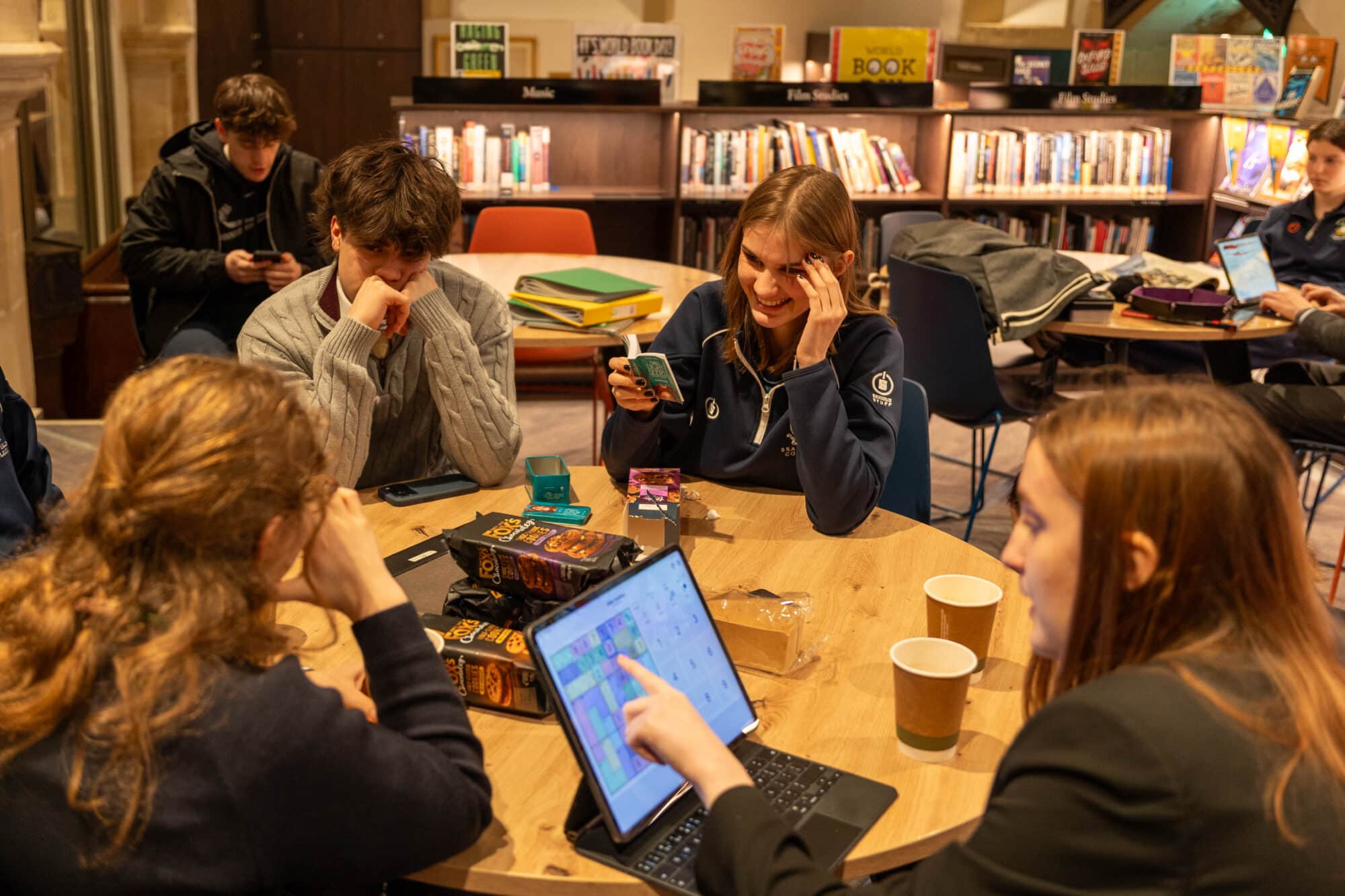 Each week, on a Wednesday or Friday afternoon, a group of pupils and staff can be found in the Library engrossed in lively discussion over cookies and hot chocolate.