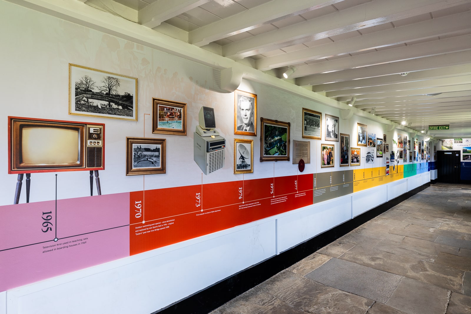 The 175 Timeline has been a very special commemorative project bringing the College Archive and the college history together, so that the whole community can learn about and feel proud of Bradfield’s rich heritage. Bloods Corridor has been transformed by the artwork on the walls into a learning resource and it has turned what was a dark corridor into a colourful collage of Bradfield’s history. Starting in 1751 when the Stevens family moved into the manor at Bradfield, to 1850 when Reverend Thomas Stevens founded Bradfield College, to 1862 when the Royal Charter was granted and 1977 when the Supplemental Charter was granted by HM The Queen for girls to join, right the way through to the co-educational school we have today.